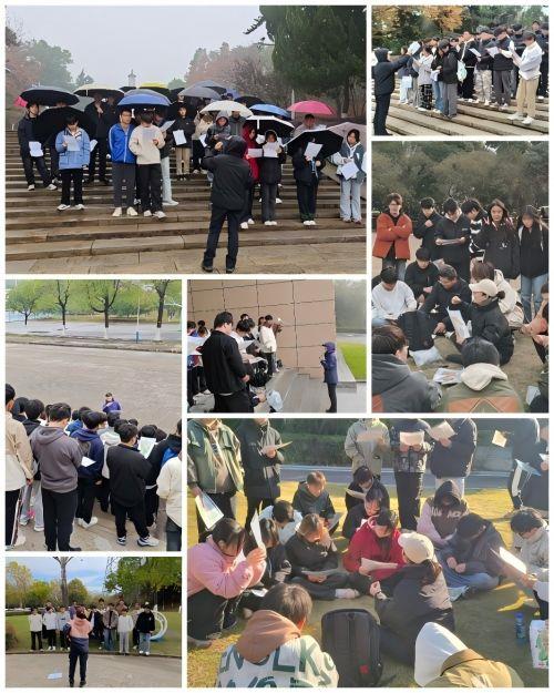 根据学期课程教学计划安排,本着安全第一,实践体验教学为目的,基础课部于11月24日至12月14日,连续四周利用周末时间,风雨无阻的组织水利、建筑学院2023级定向班及定向协会380人次前往长沙大学、长桥公园、烈士公园及岳麓山等不同地形开展校外实践教学活动。