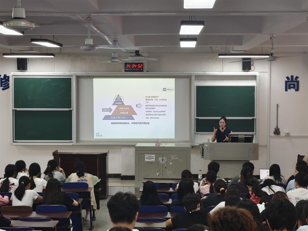 大数据与会计专业带头人首先以“你来自哪里”、“为何选择我校”、“为何选择本专业”三个问题与新生互动,迅速拉近了师生距离。随后深入浅出地阐述了会计的深刻内涵,分析了人工智能时代新技术对行业带来的机遇与挑战,指明了未来财务技术技能人才必须具备的核心技能。最后,结合人才培养方案,为新生们清晰地勾勒出专业学习路径与未来发展方向,助力同学们树立明确目标。