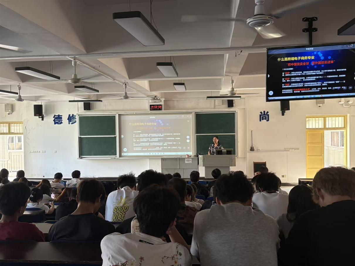 跨境电子商务专业带头人从专业独特优势、雄厚师资力量、人才培养方案以及就业前景四个方面,全面提升了新生对专业的认知与信心。同时,她对全体新生提出了明确的“四个一”要求:通过一项英语等级考试、运营一个B2C店铺、参加一项专业技能竞赛、拜师一位业内企业专家。
