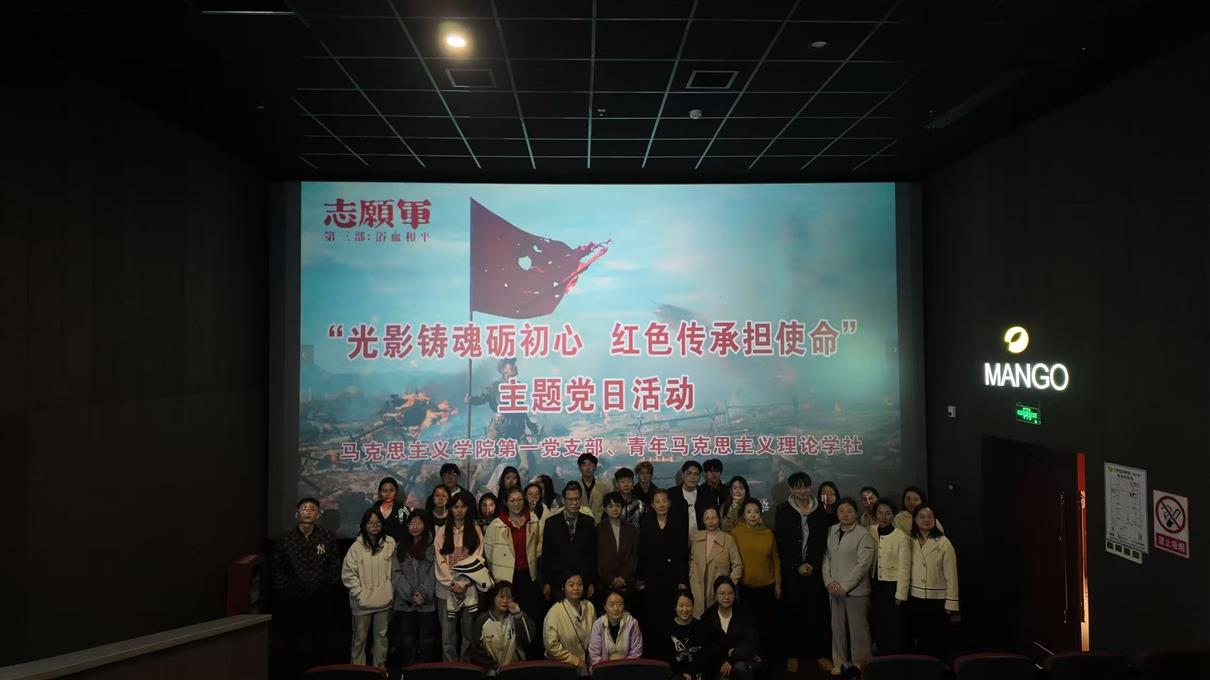 10月20日下午,马克思主义学院第一党支部联合青年马克思主义者协会(简称青马社),组织师生党员及学生代表共同观看红色电影《志愿军:浴血和平》。通过“观影+互动”的形式搭建师生共学共悟平台,将爱国情怀转化为推动学校高质量发展的责任担当,为培养担当民族复兴大任的时代新人筑牢思想根基。
