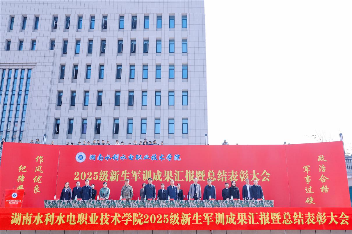 金秋十月,碧水润华章;迷彩青春,热血铸荣光。10月23日上午,学校2025级新生军训成果汇报暨总结表彰大会在学校田径场成功举行。学校党委书记常世名,党委副书记、校长王玉成等校领导,各二级学院党政负责人、副书记、全体辅导员、承训部队教官及2025级全体新生共同参会。大会由党委委员、副校长黄敏主持。