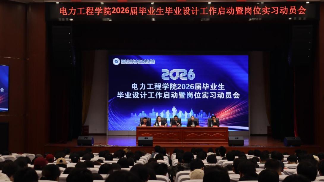 为贯彻落实教育部关于职业学校学生实习管理有关规定通知,确保我院毕业生岗位实习、毕业设计工作有序推进。10月21日下午,电力工程学院在学校礼堂举办了2026届毕业生毕业设计工作启动暨岗位实习动员会。学院党政领导班子、毕业设计指导老师、2026届辅导员以及全体毕业生参加会议。