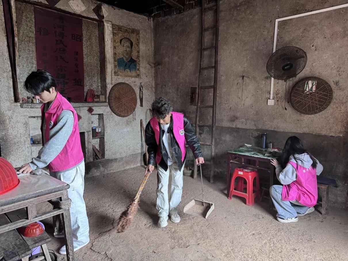 活动现场暖意融融,党总支副书记及学生志愿者们为老人送上米、油等生活物资,并分组行动。有的亲切地与老人们促膝长谈,倾听他们讲述往昔岁月与生活点滴,关切地询问他们的身体状况和日常生活;有的拿起清洁工具,认真帮助老人打扫房间、整理内务,努力为他们营造一个更加整洁舒适的生活环境。一位九十多岁高龄的抗美援朝老兵感言:当年扛枪保家,如今在家享太平,感谢党和组织的关怀,感谢学校和村领导的厚爱,心里特别暖。祝愿我们的党和国家越来越好!