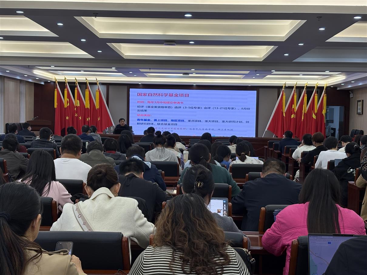 为切实提升我校教师的科研竞争力,精准对接自然科学基金申报要求与规划课题布局方向,破解教师在选题凝练、论证设计、方法创新等环节存在的共性难题,10月28日下午,科研处组织学校科研人员在图书馆综合实训楼601会议室举行2025年度专题学术讲座,近180人参加会议,会议由科研处相关负责人主持。