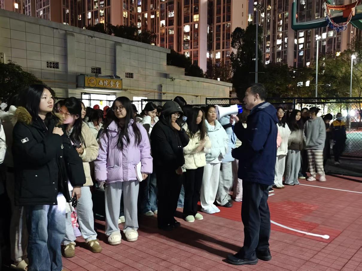 全体参演学生在规定时间内撤离至指定集合点。之后,保卫部负责人对演练总结点评,肯定同学们沉着冷静、听从指挥、互助有序的表现,强调夜间是安全事故易发时段和疏散难点,提醒师生绷紧安全弦,掌握逃生技能,牢记消防设施和安全出口位置。
