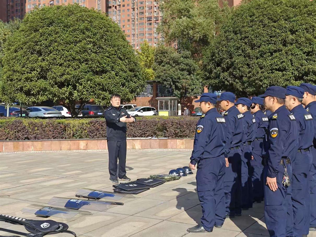 演练伊始,龙舟警官和粟志军警官首先详细讲解了各类防恐器材的使用方法。从防护盾牌的握持姿势、防暴钢叉的灵活运用到警棍的攻击与防御技巧,两位警官均进行了细致入微的示范与讲解,并邀请安保人员亲自上手体验,确保大家熟练掌握器材操作要领。