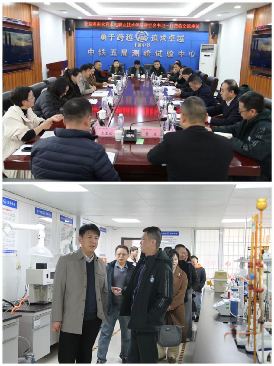 常世名对中铁五局相关单位长期以来给予学校的支持表示感谢,对五局在建筑行业的综合实力高度赞扬。同时,重点介绍了我校的办学成果和特色,尤其是水利工程、建筑工程等优势专业布局及人才培养成果,强调学校始终坚持“面向行业、对接企业”办学导向,希望以此次交流为契机,进一步优化优势专业布局,推动人才培养与企业岗位需求精准衔接,打造校企合作样板工程。