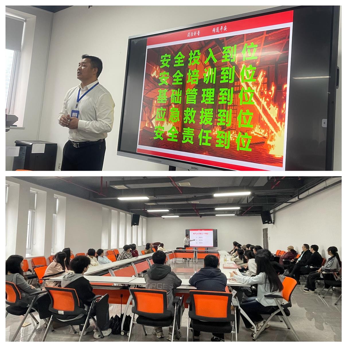 吴教官以“提升安全意识,守护书香校园”为主题,结合图书馆人员密集、纸质文献存量大、电子设备集中的核心特点,授课深入浅出、案例鲜活。他结合校园及图书馆领域典型火灾案例,通过直观的画面展示、详实的数据剖析,清晰解读了火灾发生的成因、蔓延规律及严重危害,让在场师生馆员深刻领悟“隐患险于明火,防范胜于救灾”的核心内涵,切实绷紧消防安全之弦。