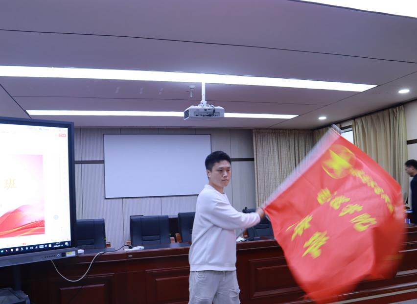 在全体成员的共同见证下,学员代表带领全体学员庄严宣誓。铿锵有力的誓言在会场内回荡,充分展现了青年骨干传承先锋精神、勇担时代使命的坚定信念与昂扬斗志。随后,学院党总支书记为第五届青锋班授旗。旗帜交接的一刻庄重而神圣,象征着责任与精神的接力传承,也宣告着新一届青锋班正式启航。