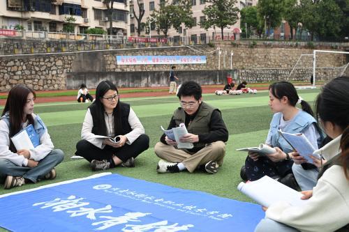 绿茵铺地,墨香盈怀。4月23日,第29个世界读书日当天,“湘水青媒”志愿服务团师生齐聚校田径场绿茵之上,席地而坐、围聚畅谈,手中捧着主流党媒杂志,一场兼具温度与深度的读书分享活动温情启幕。大家摒弃照本宣科的刻板模式,立足校园学习生活实际,谈感悟、传党音、话担当,让书香浸润青春,让思想凝聚力量。