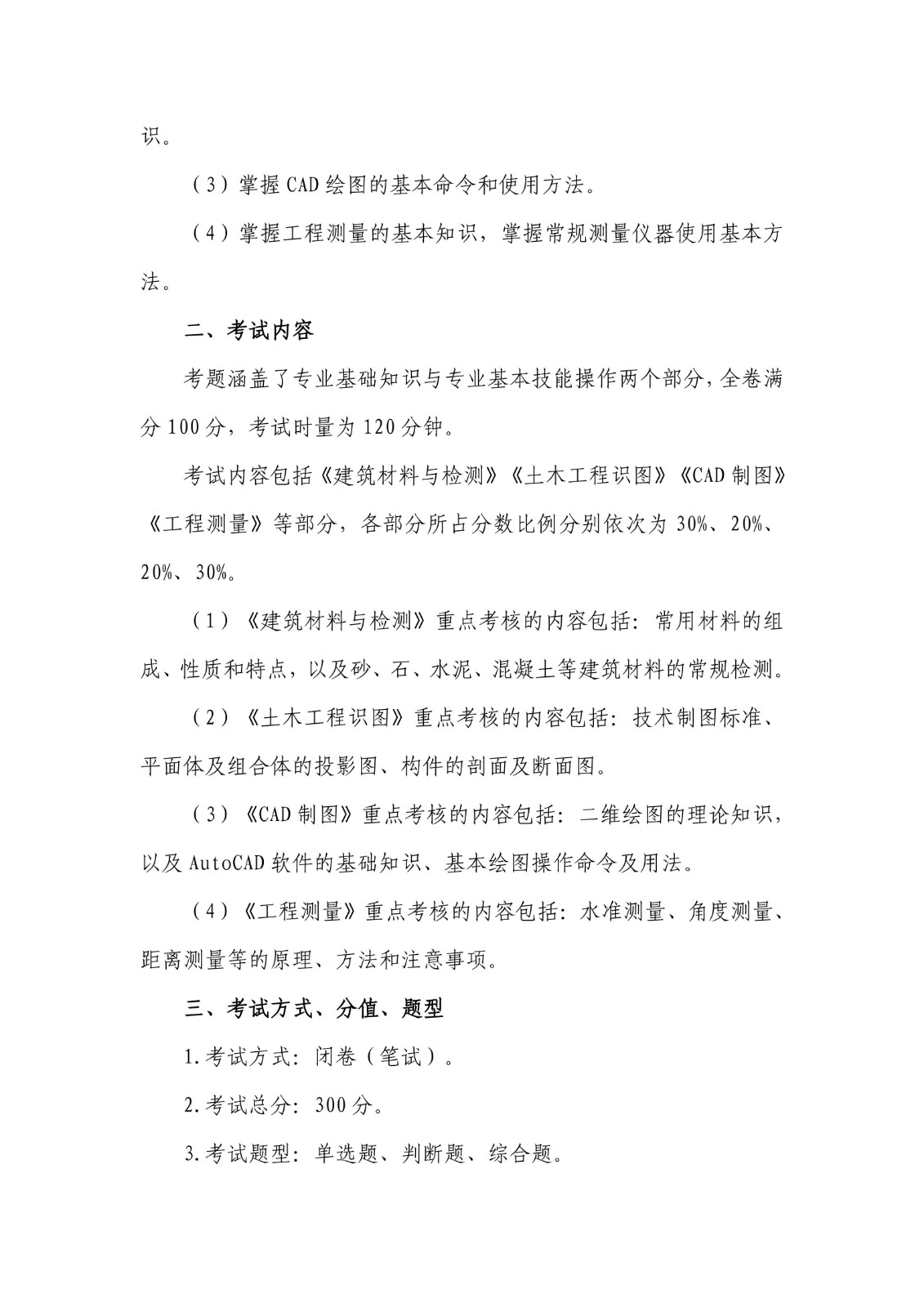2026年单独招生文化素质测试大纲